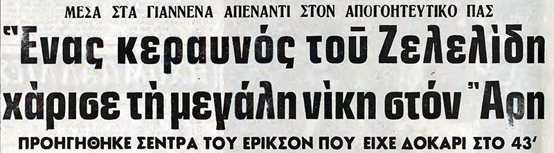 Ο Σεμερτζίδης έπαιζε το 1-2 με τον Έρικσον ο δεύτερος έκανε σέντρα και ο Ζελελίδης με ωραίο σουτ έστειλε την μπάλα στα δίκτυα, κάνοντας το 0-1.