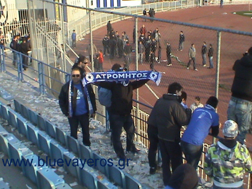 Ίδιο σκηνικό επικράτησε και έξω από το γήπεδο, όπου περιμέναμε το λεωφορείο μας για να πάρουμε το δρόμο του γυρισμού. οι αστυνομικοί, πάντως έδειχαν αμήχανοι, καθώς πέρασαν ένα από τα πιο εύκολα απογεύματα τους σε γήπεδο. Πολλές φορές έδιναν και δεύτερη φορά την αναφορά τους μέσω του ασυρμάτου, γιατί πιθανότατα μάλλον δεν πίστευε στα αυτιά του αυτός που τον άκουγε. νομίζουμε ότι αυτές οι συμπεριφορές θα πρέπει να υπάρχουν σε όλα τα γήπεδα της Ελλάδας και όλοι μας στο σύνδεσμο αισθανόμαστε απολύτως δικαιωμένοι για την γραμμή που έχουμε ακολουθήσει από την ίδρυσή των Blue Vayeros.