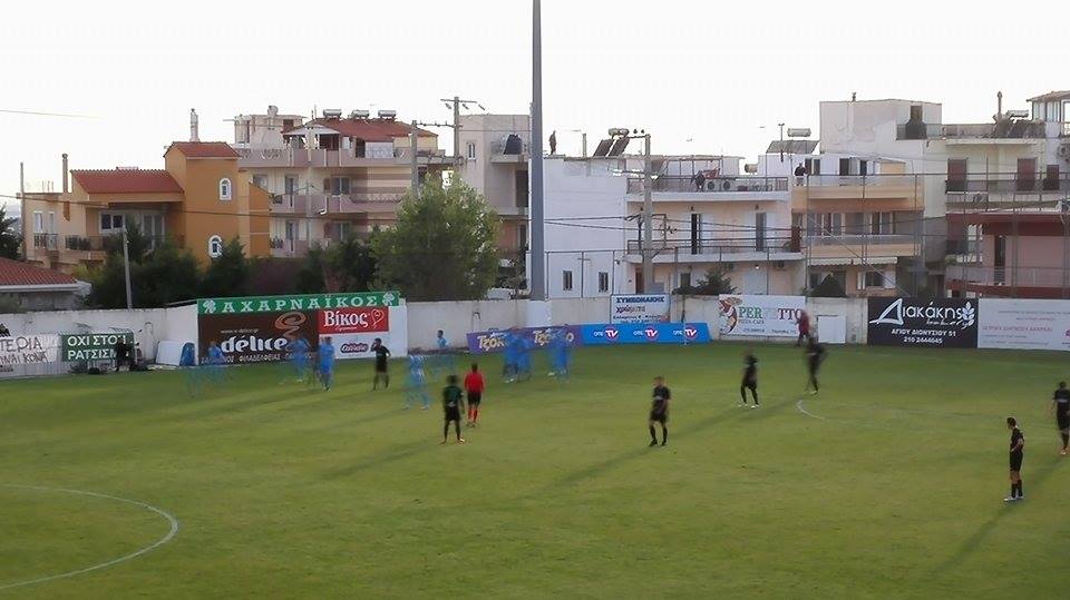 Στο 65΄λεπτό ο Αχαρναϊκός ισοφάρισε με ένα μαγικό γκολ που πέτυχε, όταν σε εκτέλεση κόρνερ από τα αριστερά της άμυνάς μας, ο Κωστόπουλος πετάχτηκε πριν από την γωνία της μικρής περιοχής μας στο πρώτο δοκάρι, έπιασε την γυριστή κεφαλιά και κάρφωσε την μπάλα στο αριστερή γωνία του ανήμπορου να αντιδράσει Περιστερίδη.