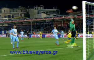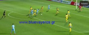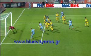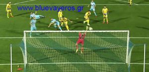 βρίσκει τον Βελίδη σε λάθος θέση έξω από το τέρμα, που δείχνει να αφνιάζεται, η μπάλα περνάει από πάνω του και καταλήγει στα δίχτυα της ομάδας μας.
