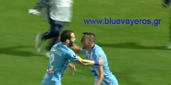 22’: Ο Γιάκος βρίσκει τον Μπουκουβάλα, εκείνος κάνει τη σέντρα, ο Σολτάνι κατεβάζει την μπάλα και με ωραίο σουτ ανοίγει το σκορ. Η μπάλα πήγε πρώτα στο δεξί δοκάρι και στη συνέχεια στα δίχτυα.
