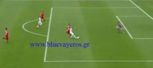 31ο λεπτό Ο Μανθάτης ανέβασε τον Λίλα από δεξιά….σέντραρε ο Λίλα….δεν πρόλαβε ο Κόντε να την σπρώξει στα δίχτυα