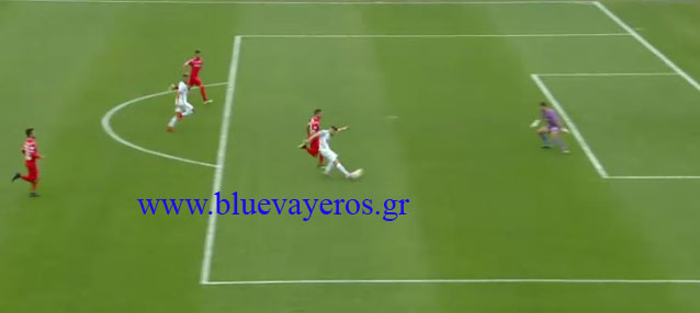 30ο λεπτό Σέντρα του Κίκε…σουτ του Γέντρισεκ…αδύναμο….μπλοκάρε ο Βελλίδης