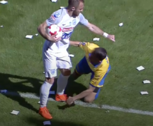 Φυσικά η συμπεριφορά του πάικτη του παναιτωλικού πέρασε απαρατήρητη… από τον διαιτητή…