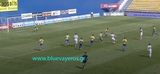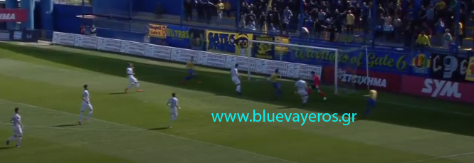 52′ Σέντρα του Χαλκιαδάκη από αριστερά, ο Κυριακίδης μπλόκαρε προ του Γιάκου που ακολουθούσε τη φάση.