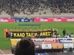 Οι παίκτες της αεκ με το πανό που είχαν στα χέρια τους